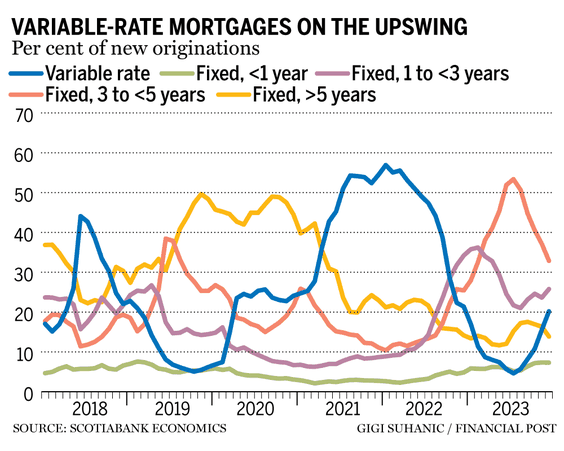 According to this Financial Post article, more and more Canadians are choosing variable rate mortgages. This is in anticipation of a decreasing interest.
